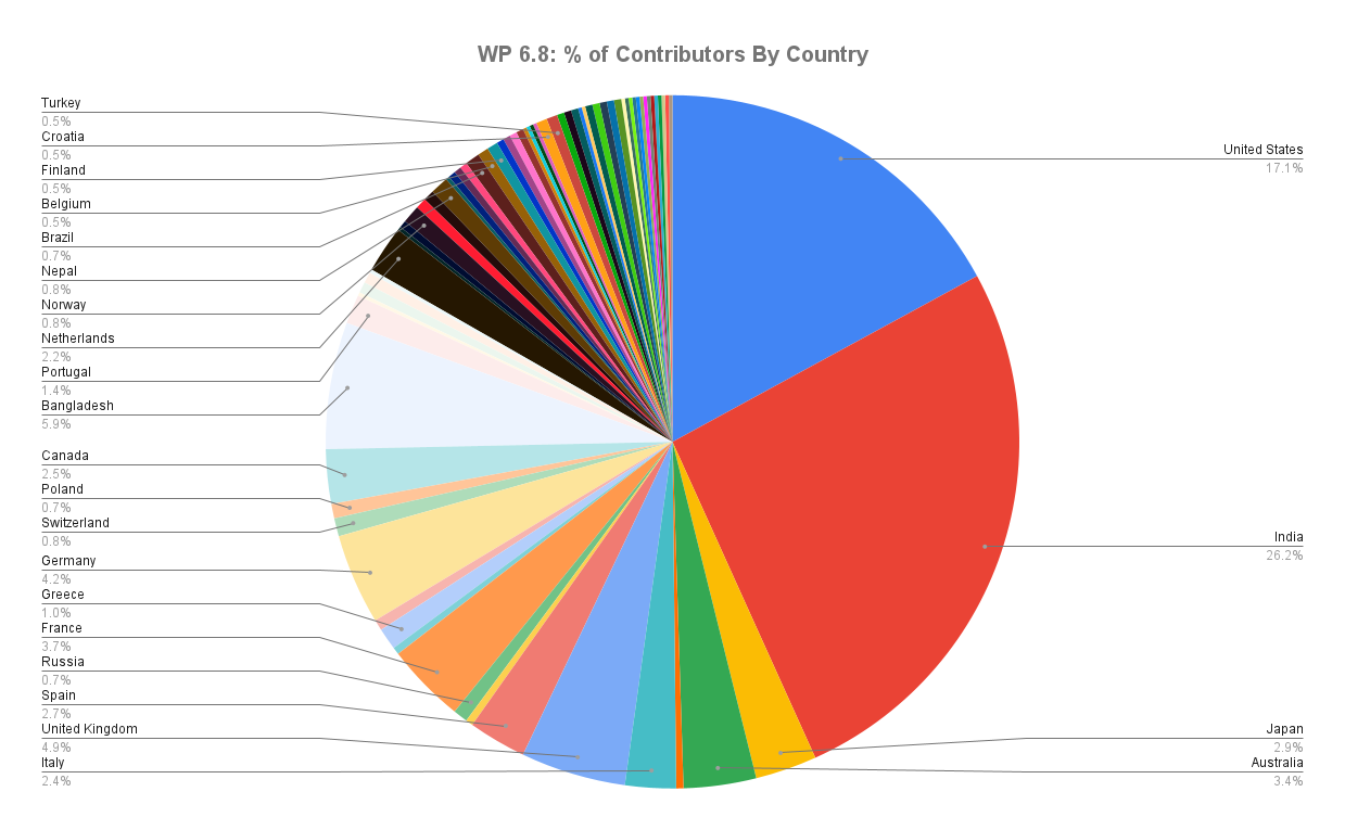 A total of 924 people from at least 73 countries and 282 identified companies contributed to WordPress 6.8. Based on the collected data, there are 326 people with an unknown or no company and 332 people with unknown countries. I could not find any location or country mentioned in their GitHub or WordPress.org profiles.